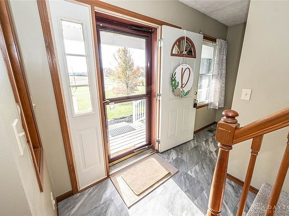 Escape to peaceful country living at this picturesque property on 4545 Paint Creek Road. This charming 4-bedroom, 3-bath home sits on 3.378 expansive acres, offering privacy, scenic views, and a perfect blend of rustic charm with modern comforts. Ideal for nature lovers, hobby farmers, or anyone seeking a quiet retreat from city life. Spacious Interior with 2,200 square feet of living space, this home features a welcoming layout with plenty of room for family and guests. Full Basement with ample storage and a large family room or recreation room. Modern Kitchen: The bright kitchen is outfitted with updated appliances, ample cabinetry, and a breakfast nook with views of the surrounding landscape. There is new flooring in the kitchen, laundry area, 1st floor bedroom and master bath. Cozy Living Room: Enjoy a cozy living space ideal for relaxing on cool evenings. Private Master Suite: The primary bedroom includes an en-suite bathroom and large walk in closet, creating a peaceful retreat within the home. The master bath was completely remodeled in 2023 with marble shower, new flooring, new vanity, toilet and lighting. Upstairs are 2 large bedrooms and a full bath. This is perfect for kids/teens as they have a large space for a playroom or TV area between the bedrooms. Outdoor Paradise: The expansive 3+-acre lot offers endless opportunities for outdoor activities, including gardening, hiking, and more. Enjoy your mornings on the front porch and sunset views from the backyard patio. Outbuildings & Workshop: The property includes a large barn and a workshop, ideal for storage, hobbies, or small farming projects. Playset conveys with sale. Convenient Country Location: Located just a short drive from Eaton, you’ll have easy access to town amenities while enjoying the tranquility of rural living. Whether you're looking to embrace the country lifestyle or enjoy a serene family home with plenty of outdoor space, 4545 Paint Creek Road has it all.