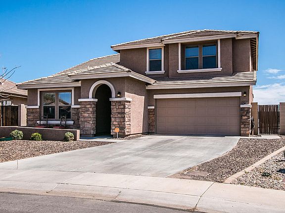 What a find! Beautiful 4 bd, 3 ba home with 3 car garage sits on HUGE lot with Mountain views. 1 bd and full bath down stairs. Wood look plank tile downstairs. Kitchen has dark stain maple shaker cabinets and stunning granite counters. Massive walk in pantry and downstairs laundry room with cabinets located downstairs. Oversized master suite with sitting room. Master bath has separate tub/shower and walk in closet and linen storage. Massive grassy yard. Enjoy the refreshing pool with water feature. Full length covered patio. BBQ station stays!