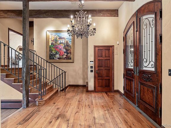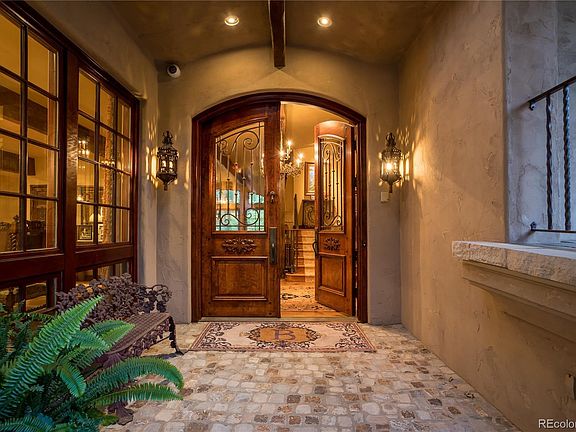 Residing at the end of a private lane and backing to Little Dry Creek, this magnificent property spans nearly 2 acres. Gated circular drive & porte-cochère invite you to this European style residence, incorporating uncompromising architecture, outstanding craftsmanship, customized details + stunning natural surroundings. Remarkable park-like grounds are comprised of multiple patios including an incredible space featuring outdoor fireplace & expansive vine-covered arbor, perfect for al fresco dining. Garages accommodating 4 cars feature epoxy floor coating + snow melt at the car court, courtyard & north walkway. Amazing flex space in the 650sf garage attic + a “Martha Stewart” potting shed. Enjoy gathering with friends at the bocce ball court, and watching sunsets over the exquisite pond, the epitome of outdoor activity & relaxation. Dramatic entry brings you into the thoughtfully designed dining & living rooms overlooking the impressive backyard with doors leading to the balcony. Well-equipped kitchen features attractive hand-painted tile, an original Scott Yablonski, signed by the artist; and accented by a colorful butler’s serving area. Sumptuous primary boasts illuminating sunlight with patio, 6pc bath & walk-in closets + adjacent guest en suite. Vast lower level includes 2 en suites, family/game room, wine room, study, gym, laundry + storage. Richly accented with reclaimed hardwood floor, plastered walls, artistic wrought iron, custom carved European stone fireplaces & exquisite lighting fixtures. Handsome stone staircase leads you to a private suite with 4pc bath, coffee bar & patio elevated above the courtyard. A landmark property - a perfect private sanctuary or wonderful place to entertain on a small or grand scale. High ceilings + expansive doors & windows invite lively interplays of light & color. One of the most revered locations in Old Cherry Hills, this exceptional property offers an unmatched combination of privacy & proximity to so many amenities.
