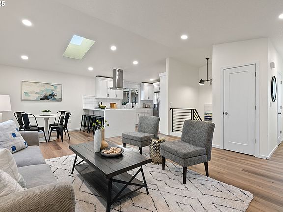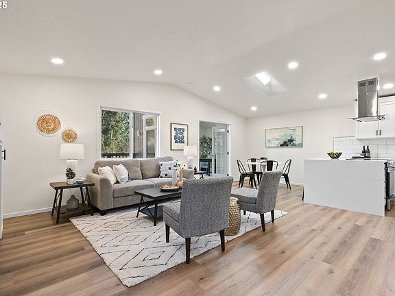 Step into this beautifully remodeled home! Enjoy an open floor plan with vaulted ceilings and skylights that fill the space with natural light. The updated kitchen features new stainless steel appliances, quartz countertops, a spacious island, and all-new cabinetry with ample storage. With new flooring throughout the home, renovated bathrooms, and fresh interior and exterior paint, this home is truly move-in ready. The bonus sunroom offers flexible space for a home office or additional living area. Outside, the covered patio with a hot tub provides the perfect setting for relaxation, while the expansive yard is ideal for entertaining. Additional room under house that could be converted into workshop or office that isn't included in square footage. Don’t miss this incredible opportunity for a completely turnkey home! [Home Energy Score = 9. HES Report at https://rpt.greenbuildingregistry.com/hes/OR10224271]