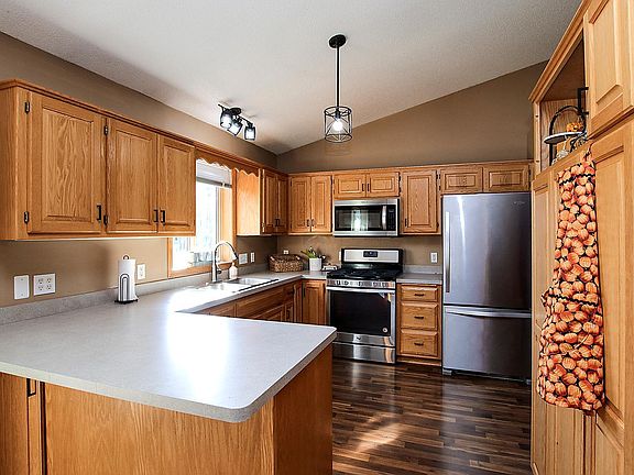4 bedroom, 2 bath rambler, oak kitchen cabinets with a pantry, stainless steel appliances, open floor plan, vaulted ceiling and a bay window. Master bedroom with a walk-in closet and a master walk-thru bath. Dining room has patio doors to a deck and backyard for entertaining. Close to Lake Mitchell/Big Lake, within walking distance to a great trail system that goes through the woods and by the lake, and many parks. Commuter station in town. America's Preferred Home Warranty included.