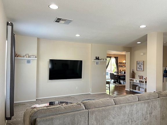 Plenty of room to roam in this giant 2 story home with a massive rear yard. The versatile floorplan offers many options. Downstairs features an oversized living room, a bedroom and full bathroom as well as a beautiful family room with tiled fireplace and family sized kitchen with all the modern amenities. Upstairs there's a giant loft / game room, laundry room and 3 more bedrooms including the spacious master suite with a stunning balcony view. There's also a soaking tub, separate shower, and a ginormous walk-in closet. All highlighted with new paint, carpet with upgraded memory foam padding and waterproof wood planks. There's more upgrades throughout including new kitchen backsplash, cabinet pulls, stainless cooktop, under cabinet lighting and new sink. The massive rear yard adds something for everyone including a trampoline, fire pit sitting area, dog run, storage shed and a full length house patio and cover. (added bonus - the fridge, washer / dryer are included)