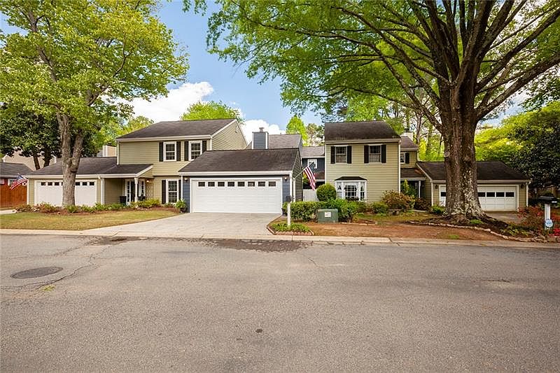 Perfect Dunwoody Location in sought after Village Oaks this 3B/2.5B has beautiful upgrades in all the right places with beautiful stained cabinets & granite countertops, fully upgraded bathrooms with sliding glass barn door-like shower doors & wood barn door in master! 2 car garage, 2 level home with private front patio area great for entertaining, keeping room with fireplace, family room with lots of natural light, separate dining room, spacious sunroom, & back patio area with lots of green space. Neighborhood has an active association, community pool & clubhouse. Quiet neighborhood close to Pernoshal & Brook Run parks with walking trail, playground, basketball court, summer concerts and more. Easy access to 285 and GA 400.