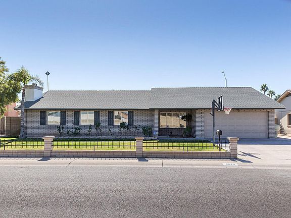 Visit this move-in-ready Opendoor home any time + No agent needed, no scheduling required, just come over + Access instructions are on the front door + Text or call (480) 351-6622 for more information about the home, Opendoor, or how the purchase process works. This home features a double-sided fireplace connecting the living and dining rooms, fully landscaped yards, and a 2-car attached garage. The bright kitchen gets plenty of natural light from corner windows, and has a tile backsplash, black appliances, and light-tone cabinets in great condition. The Master suite includes a gorgeous surround-tile walk-in shower and another fireplace. One of the bedrooms has a built-in desk space and cabinets. The indoor laundry has overhead cabinet storage and built-in shelving. Shoot a few hoops at basketball hoop in the front yard or jump off the diving board into the large private pool out back! Enjoy relaxing or sharing a meal on the patio with plenty of space for a grill.