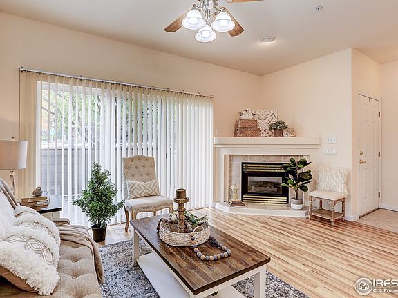 Main Level Corner Unit Condo- NO STAIRS & wide door ways! Ideal South Ft Collins Location right next to groceries, restaurants, shopping and the bus line. This 2 Bedroom Home has High Ceilings, Gas Fireplace, Private Covered Patio, plus includes a DETACHED 1 Car garage in addition to the reserved parking. It's Move in Ready- with NEW Paint, NEW Laminate Flooring, Updated Light Fixtures, & NEW H20 Heater. The Neighborhood has a Pool, Hot Tub, Clubhouse & Workout Facility. Hurry- it won't last!
