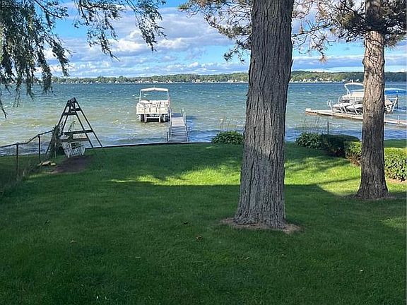 Cozy one story home on Round Lake. It has a front and a back deck to enjoy the summer breeze coming off of the lake. The house has a one-car attached garage with front cement driveway. The back yard has mature trees and a 30x40 pole barn with electricity & cement floor. The property in all constrains 0.457 acres with 1413 sq. ft. living area. 32 ft. deeded lake front that comes with a dock. The house has a newer furnace and windows. Recent survey available. House comes with appliances & rider mower with roller. Read Less