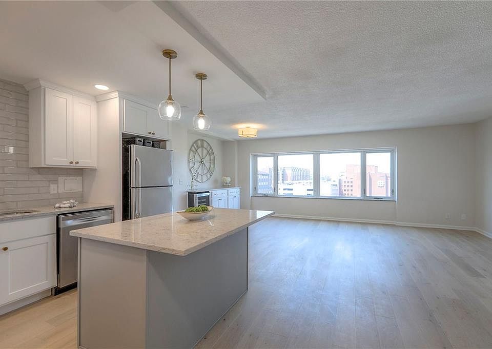 Welcome to this beautifully renovated 1-bedroom, 1-bathroom condo on the 10th floor of Parkway Towers, a prestigious high-rise located just off the Country Club Plaza. Step into an open-concept space featuring brand-new flooring, a modern kitchen with quartz countertops, and stainless steel appliances. The dining and living areas flow seamlessly together, creating a bright and inviting atmosphere with a built-in wine cooler perfect for entertaining. The spacious bedroom offers comfort and tranquility, while the stylishly updated bathroom boasts a sleek, modern shower. Enjoy the convenience of an in-unit washer/dryer combo, making laundry day easy and efficient. This condo is a true blank canvas, ready for you to move right in or personalize with your own touches. Every detail has been thoughtfully designed for comfort, style, and modern living. Covered parking space is currently available with this unit. Parkway Towers amenities include newly renovated lobby, lounge, game room, and fitness center, assigned storage space as well as 24/7 security. HOA dues cover heating, cooling, gas, water, and more. Enjoy panoramic views of Mill Creek Park and easy access to the streetcar extension, just one block away or take advantage of your own leased, covered parking space. Don't miss this opportunity to live in one of Kansas City’s most iconic buildings with unmatched Plaza access and upscale urban living.