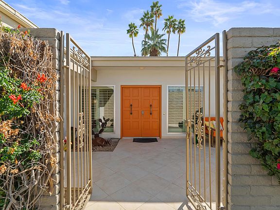MAGICAL MOUNTAIN, GREENBELT and POOL VIEWS in INDIAN WELLS! Your dream escape is here in CASA DORADO, where a hip, playful mid-century modern vibe meets breathtaking natural beauty! You are welcomed by a generously sized gated courtyard, providing a private retreat to relax and enjoy your peaceful surroundings. Upon entry, experience the seamless flow of an OPEN FLOOR PLAN that enhances the spaciousness and connectivity of the living areas, perfect for entertaining! Architecturally delightful are the the floor to ceiling windows providing loads of natural light! Totally Remodeled! Take note of the designer inspired colorations and finishes including new tile flooring, custom blinds, LED lighting, modern ceiling fans, upgraded counter tops and backsplash, smooth ceilings , completed by fresh interior paint! The kitchen is open to the dining area and has been reimagined with new appliances and gas cooktop! Celebrate infrastructure you can count on with a Newer A/C, Heater, Windows and Sliders, Closet Organizers and updated Washer and Dryer! Boasting 2 sizeable Guests Rooms and Bathrooms, each leading out to a patio. The Primary Suite offers a personal vanity, large walk in closets, double sinks and modern shower in the bathroom! The back patio overlooks the pool, encircled by Mountain Views! Enjoy Casa Dorado with a 4 Hole Pitch 'n Putt, Tennis, Pickleball, Pool/Spas and More!