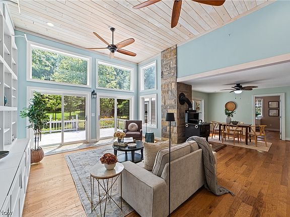 Welcome to a one-of-a-kind custom-built home nestled on over 2 acres in Oberlin. This extraordinary 3 bedroom, 3 full bath residence offers unparalleled privacy & unique features. Relax & enjoy life on the front porch which overlooks a tranquil pond & a landscaped garden brimming with perennials & fruit trees. Step inside the foyer & be captivated by the light-filled living room, featuring soaring ceilings, floor-to-ceilings windows, built-ins & heated hardwood floors. The open-concept design seamlessly connects the living & dining area & kitchen, creating a perfect space for entertaining & everyday living. Between the living & dining space, you'll find an Amish-built wood stove, perfect for cooking & adding a warm, rustic touch to the home. The efficient kitchen boasts a breakfast bar, white cabinets, ample storage, pantry & garden window. The slider off the living area leads to a deck that offers breathtaking views of the expansive backyard. Off the dining area you will find a custom-built Acadia greenhouse with heated floors, attached to the house, allowing you to enjoy gardening year-round. The first-floor primary bedroom is your personal oasis with a built-in wall closet system & a private deck. The spacious, wheel-chair accessible ensuite features a soaker tub, full entry shower & dual pedestal sinks. Additional first-floor amenities include an office, large laundry/mud room off the garage & another full bathroom. Venture upstairs to find 2 additional comfortable bedrooms, a bonus room, a full bathroom, & a cedar attic. The walk-out basement features heated floors, a large rec room, bunk room, 2 storage rooms, utility room, workshop area plus a root cellar perfect for canning & preserving food. Step out of the rec room to an outdoor patio area. The backyard is a gardener's dream with a fruit & vegetable garden, a shed & chicken coop. Additional features include a reverse osmosis water system, whole house generator, & steel roof with a lifetime warranty.
