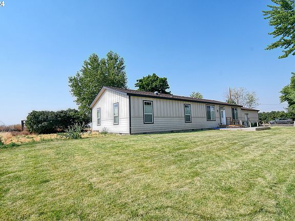 Located just 2.4 miles outside of Pendleton, this 2009 manufactured home sits on 3.47 acres and has a 2010 Sq Ft +/- home with 4 bed 2 baths. There is a stick built 2 car garage with 2 additional outbuildings. Easy access to home and Pendleton. Beautiful views of the Blue Mountains, this home and property offers a small acreage ideal for a couple of horses, FFA/4H projects and clean living.