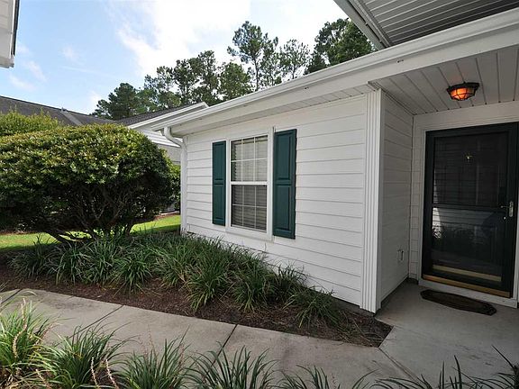 Welcome to Eastport in the charming Hamlet of Little River where living is easy, safe, carefree and oh so convenient! The Garden Homes at Eastport seem compact, but LIVE BIG! These houses are particularly desirable as they combine the best of a spacious detached-home-residence with the minimal-maintenance-lifestyle of a condo. Plus, low HOA fees include exterior yard maintenance, and the yard is on a sprinkler system. Eastport has ease of location as well to shopping, the finest and fun restaurants, recreation, beaches, the Little River Waterfront and major roads and highways. This lovely ICW community itself also features the signature Valley at Eastport Golf Course, with its own clubhouse & grill, and owners' pool. This Garden Home is only steps from the pool & amenity center and enjoys front views of the 18th green, putting & chipping areas and clubhouse. Yet it is situated on a very private wooded lot that adjoins a secluded wetlands enclave with pond view, providing a pretty backyard setting from its well-enjoyed Carolina room and bricked patio, accessed from both the living room and master bedroom. This peaceful respite which invites quiet enjoyment of its natural surroundings can never be developed. There is a formal front entry foyer with entry closet that leads to the guest bath and the two guest bedrooms in a desirable split-bedroom floor plan. These bedrooms are roomy with abundant closet space, one with a built-in desk and double closet to create a study or small office. It is unusual to find a double-car garage in a beach house. This garage provides practical family entry and popular traffic pattern into a nice laundry room with more double closets for storage and a window – then to the kitchen with both a big breakfast nook with window and a handy breakfast bar. There are pull-down steps in the garage to a floored attic. Lots of maple cabinets add warmth, style and storage to this wonderful kitchen, and a large in-kitchen pantry provides more, seemingly limitless storage. New appliances include the refrigerator, dishwasher, disposal and dryer. Ceramic tile is in the entries, laundry, kitchen, both baths and Carolina room. The kitchen looks out on the expansive main floor – from the dining/living/Carolina room to the backyard garden. A vaulted living room ceiling with sky lights and cheery windows in all rooms except the guest bath wash the entire home in natural light throughout, and complimentary window treatments are upgraded wooden blinds with decorative valences. Pleasing colors define the comfortable beach feel of this immaculate and beautiful Garden Home, only lightly used as a second home/vacation property. The dining room easily accommodates six. The large living room is the heart of the house, to gather, entertain or simply relax. Maple cabinets are repeated with a stunning living room wall of built-ins. Off the living room is the great master suite with decorative tray ceiling, walk-in closet, tranquil views and en suite with garden tub, glass-tile window, separate shower, privacy water closet and vanity. There are about 2,300 square feet under roof and 1,650 heated square feet of perfectly designed casual living space. The opportunity to buy a unique Eastport Garden Home is truly rare. And, although it may appear compact from the outside, IT LIVES BIG! See it today.