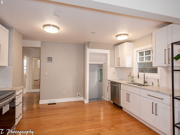 Superb Remodeling by qualified Craftsmen with new stainless steel appliances. Appliances included. Ample counter space and storage. Shining re-finished Original Oak hardwood floors throughout and New paint throughout. Bathrooms beautifully remodeled. Newer Oil tank. Roomy Double car garage. Nice quiet neighborhood in Parkrose area. [Home Energy Score = 3. HES Report at https://rpt.greenbuildingregistry.com/hes/OR10075325]