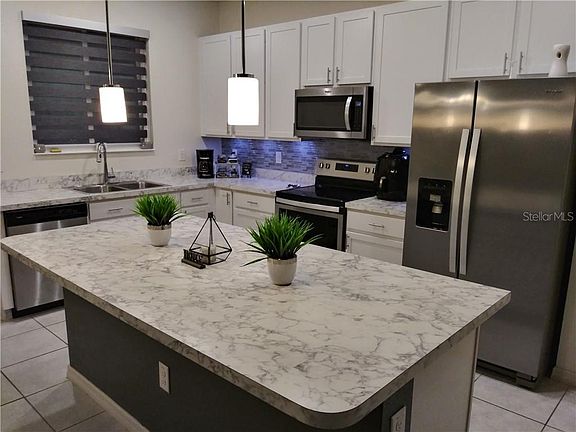 This Amazing property on a conservation lot is moving ready. Open floorplan with 9'4" ceilings throughtout, split bedrooms & kitchen that overlooks the great room. Kitchen boasts light 42" upper cabinets with whirlpool appliances in Stainless Steel. Window in living room area and sliding doors has remote blinds, also kitchen window has custom made blind. Master bedroom is located in the rear of the home. Enjoy outdoors on your covered patio. Ideal family community that features amazing sunsets, playground basketball courts, dog park, pavilion with picnic tables. Schedule your private showing today! With close proximity to US 192, Orlando International Airport, Lake Nona's Medical City, Melbourne Beach, Fl Turnpike, Narcoossee Rd, State Road 417, St Cloud Civic Center. Its hard to pick a better place to live in Central Florida! BRING YOUR BUYERS!!!