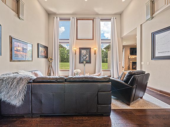 4546 South Farm Road 223 is truly a DREAM PROPERTY come to life! Gated for your privacy and sitting on an expansive 12+-acre lot, this 5-bed, 3-bath, 5000+ sq. ft. home is only 10 minutes from the city of Rogersville, MO and less than 15 minutes from the shopping, dining, and destinations of Springfield. Stepping in through the impressive 4' x 8' doorway, the grand and airy foyer, sitting room, and formal dining room area welcome you directly in. A tall, 18 ft. tray ceiling with ambient lighting and large windows in the sitting space help draw your eyes to each of the finer, architectural details and moldings adorning the entryway. The right wing of the home opens into a unique open-concept kitchen, informal dining room, and a hearth sitting area with a functional wood-burning fireplace. A long 10-foot island in the kitchen makes for the perfect entertainment space for party guests and the deep farmhouse sink with two drawer dishwashers on either side are even more perfect for speeding up the cleaning process after. This kitchen was designed with the utmost convenience and utility in mind with great features like a gas range, double Kitchen Aid ovens, a Sub-Zero fridge, touchless faucet, slow-close cabinets, and a large walk-in pantry. On the other side of the home, the left wing, holds an oversized primary suite and private office behind a pair of custom frosted-glass double doors. There are plenty of amenities to help you wind down or get ready for the day like the primary bathroom's jetted tub, its walk-in shower with rainfall shower head, a large island with unique double sinks, and your must-have double primary closets. Previous owners have also installed a safe room or storm shelter in one of the primary closets for added peace of mind.