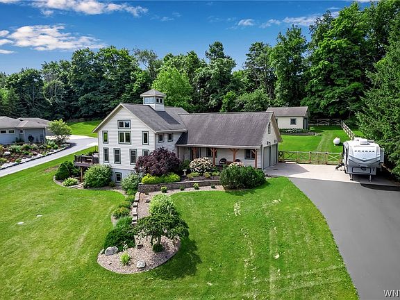 4546 Thrall Rd. is a one of a kind Custom Post and Beam Timberframe home designed by Bensonwood Timberframe Homes of New Hampshire and New Energy Works. Features: Million dollar views of lower Niagara Peninsula and the Toronto Skyline. Energy star labeled home with an HERS score of 90.9. Widows abound bringing lots of natural light. First fl open fl plan w/ natural red oak hardwood flooring, full bath & bdrm with radiant fl heated tile fl throughout lower level & master bath. Attention to detail, 36inch drs throughout. 2nd fl loft enhanced by the 8 electrical opening awning windows in cupola. Step down to the lower level complete w/ full bath, bdrm, sliders open to paver patio w/firepit, which can be a perfect in-law-suite. Custom landscaping w/retaining wall & sprinkler system, 20x24 ft pole barn. Fully fenced backyard with drainage at the back of the house. Further details of the home are attached in the MLS.