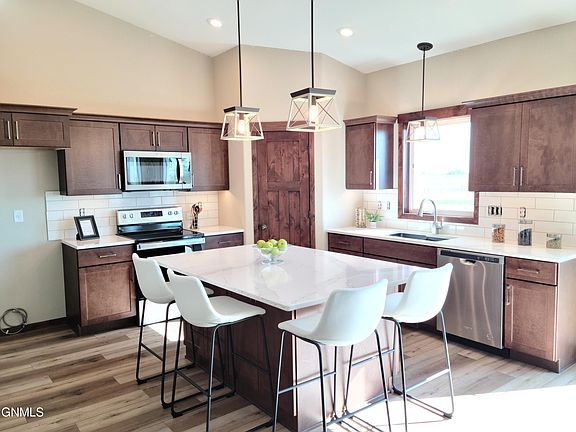 Beautiful Sprauling Ranch Style Home out in the New, and Exciting MAVERICK ESTATES! Our 'Maddock Plus' floorplan is a good sized Ranch-style Plan with lots of 'Bells and Whistles'! The Kitchen, Dining, and Livingroom feel great with a wide open feel, Lots of Beautiful woodwork throughout, including Birch Cabinets, Knotty-Alder Trim and Doors which are Solid-Core, QUARTZ Countertops, and Open Railing. There's a Beautiful Master Suite with a 'Box' ceiling, Master Bath with a Tiled Shower, and nice sized walk-in closet. Numerous upgrades throughout, including: 9, Main Level Ceilings QUARTZ Countertops, Custom Mirrors, Stainless-Steel Appliances, a granite sink with upgraded Kitchen Faucet, Recessed Lighting inside and out, Rock Trim on the front, Radon Mitigation System, Security System by CAVES, and more, all on a 1.5 acre Lot with a great view, which includes the Missouri River! The Basement is unfinished, however is framed, and is setup for 2 more Bedrooms, a HUGE Familyroom, an additional Full Bathroom. The Triple Garage is finished off beautifully being Heated, Insulated, Sheetrocked, Taped, Textured, Painted, and featuring a Beautiful epoxy floor! REALTOR/BUILDER.