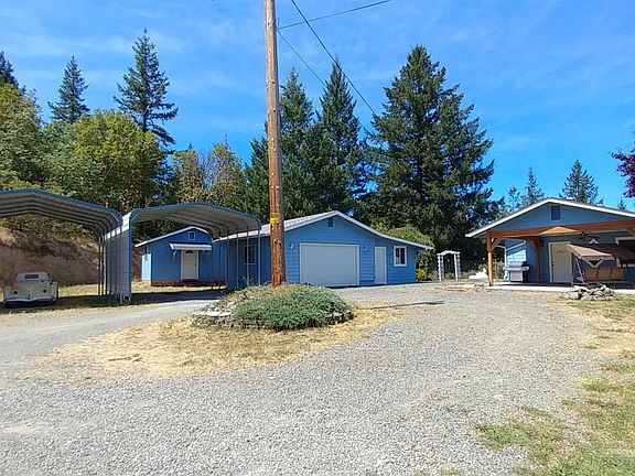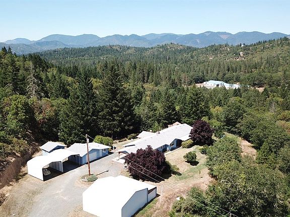 Just minutes from Grants Pass and the medical community is this private retreat at the top of a gated community. No HOA, just gated and private so you can enjoy your top of the hill home with places to store everything from cars, RV's Boats and more! Has its own shop attached to a detached garage with compressor hookups. Another storage building behind the carports and then more in the backyard. Storage will not be an issue here. Nice covered patio on west side and south. Patio on North side too with garden areas and room for animals. Fenced off areas and lots of extra rooms for guests. Guest qtrs. has its own entry with own bath but can also be the extension of the master bedroom for a den or office. Family room and living room and a bonus to this one is a huge entertainment room which is currently being used as a movie room. Included is rototiller, ladders, W/D, all kitchen appliences. All information deemed accurate but subject to change.