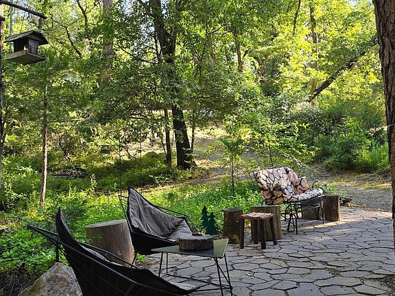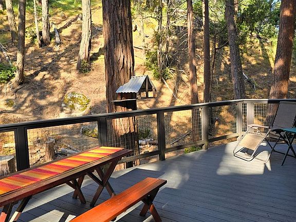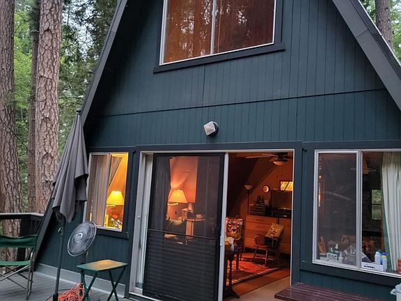 Beautiful Creekside Retreat! Check out this amazing A Frame, situated right on the water! Beat the summer valley heat, find yourself relaxing on your private spacious deck, shaded by tall pines, listening to the soothing creek, maybe reading or sipping on a cool one! l bedroom main floor, a large sleeping loft to sleep 4, nicely updated 3/4 bath main floor. Kitchen & living area form a great room with access to all weather wood deck perfect for gatherings. Front yard paved patio, woodstove for cool nights! Lots of windows for natural light and creek views. Ample storage with a work shop area. Cabin is accessible all four seasons, roads are plowed in winter months. Surrounded by Sequoia N. F. for all your recreational fun. Most everything to stay. Do not let this Creekside delight get away, make it your special Retreat.