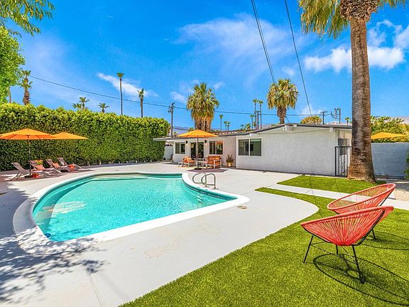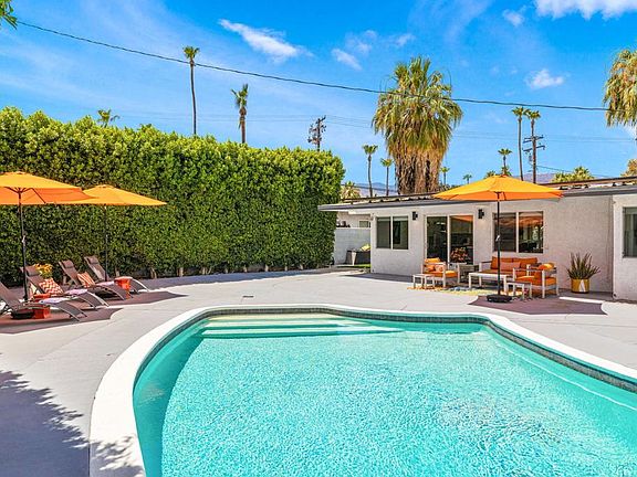 Attention investors! Just remodeled mid-century that is ready for short term rentals! One of the few locations in Palm Desert that allows short term rentals due to unique R-3 zoning. This perfect 2 bed/2 bath with private pool, owned solar and all the updates are sure to impress. New flooring, new kitchen and bathrooms and all sorts of style will help welcome guests into your perfectly appointed Palm Desert retreat. Soak up the sun in the stylish backyard with large pool and fantastic views. Inexpensive power bills due to the owned solar system keep your costs low while bringing in massive short term rental income. Located just minutes from El Paseo and all the best shopping and restaurants in town. Property is an active rental, reach out to LA1 or LA2 for showing access.