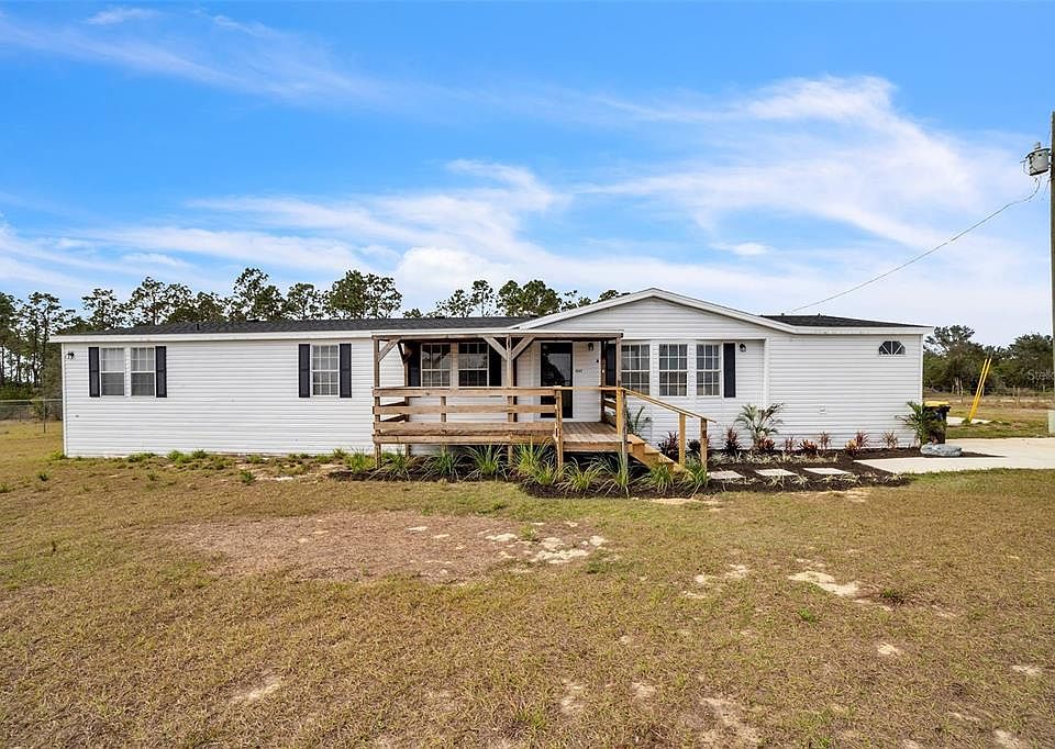 WOW. Gorgeous 4 bedroom/2 bathroom manufactured home situated on MORE THAN 2 ACRES OF LAND (2.29 acres) in Lake Wales! Spacious home with a beautiful open layout and split floor plan with modern finishes. New vinyl flooring throughout, new paint, updated bathrooms with new toilets and vanities, retiled stand-in shower in the master bathroom. NEW kitchen with new cabinets, sleek quartz countertops, new backsplash and all NEW stainless-steel appliances- and more! All new fixtures, fans, lights throughout. HUGE master bedroom with a walk-in closet, ensuite, and new bathroom with a double sink vanity. Once you see this home, you'll realize this can be your happy place! BRAND NEW 2024 ROOF And HVAC less than 5 years old!