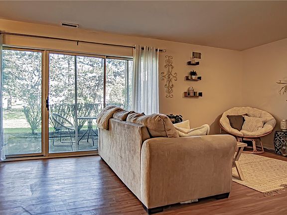 Tastefully updated first floor condo with in-unit laundry! Nothing to do but move in! Spacious and welcoming sunlit living room with sliding glass doors open to the covered patio. Kitchen with adjoining dining area creates ideal space for entertaining. Two good sized bedrooms and two full baths; the primary bedroom is complete with its own ensuite. Updated standup shower with tile. Laminate flooring throughout and freshly painted walls. New furnace Dec. 2021. All appliances included. No pets allowed. HOA fee includes gas/heat, water/hot water, basic cable, lawn & garden (all exterior) maintenance, roof, snow removal, trash removal, and use of in-ground pool. Enjoy all community amenities plus in-ground pool and the luxury of no exterior maintenance! 2022-07-22