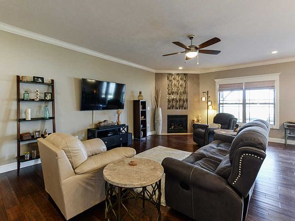 Amazing All Brick home on cul de sac, 3 car garage in The Lakes at Wild Horse within walking distance to Hickory Hills! Beginning with sharp curb appeal... the exterior offers covered porch, wide and fairly level driveway, front & back designed landscaping with electric lighting (front), variety of decorative trees, fantastic stone patio & pergola, fire pit, and wood fence with double gate. Inside is so nice....offering an open concept with engineered hardwoods, plantation shutters (most), carpet in the bedrooms, gas fireplace with blower & accent wall, crown molding, split floorplan and raised ceilings. The kitchen hosts a large 9x3 granite island, pendant lighting, black & stainless appliances, good sized walk-in pantry with built ins, soft close kitchen drawers, with plenty of countertop & cabinet space. The master is private...and fairly large...offering raised double vanity with granite, two walk-in closets with built-ins, plantation shutters, and double trey ceiling. Home shows incredibly well. Must See!