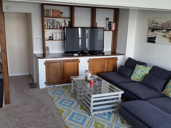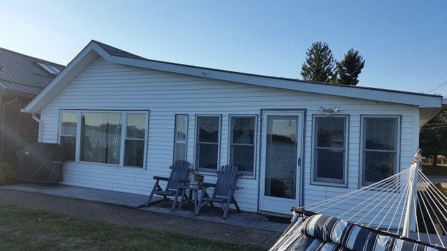 Glassed sitting room looking out on the Main Lake. Large kitchen and master bath on Lake level. lower level has family room,utility room, bedroom and bath. Detached 2 car garage. Invisible fence. year around living with public utilities