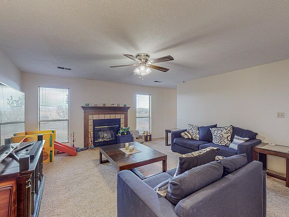 Welcome to this charming home for sale in Vista Hills! Boasting 3 large bedrooms, great room, open kitchen, and a 2-car garage, this property offers ample space for your family. You'll be pleased to know that this house has received numerous upgrades, ensuring your comfort and peace of mind. The roof was replaced in 2013. In 2015, a new furnace was installed. The water heater was upgraded in 2018. Brand new evaporative cooler installed in 2023. To enhance your comfort further, newer ceiling fans have been installed throughout the house. Large .26 lot with room for your outdoor enjoyment! No HOA here! Stainless steel appliances! The refrigerator, washer, and dryer are included! Situated in the heart of Rio Rancho, this home is surrounded by a vibrant community. No Polybutylene Pipes
