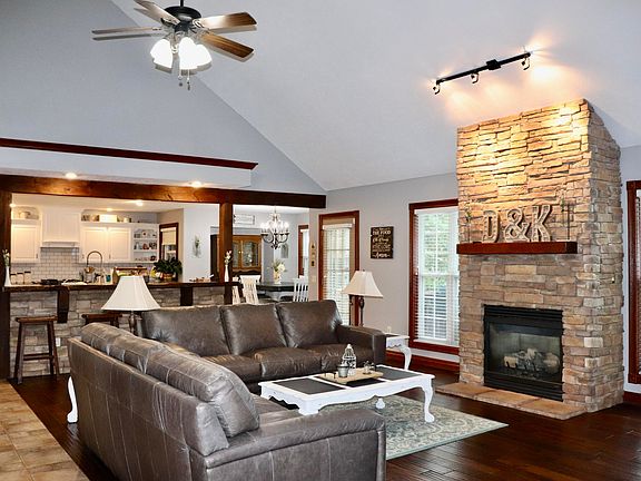 The updates & character in this home are fantastic! From the top of the line kitchen to the new roof, you will be impressed inside and out. The covered front porch greets you as you enter this 4 bedroom, 2.5 bath home with an office and multiple living areas. Did I mention there are 2.89 acres! The main floor includes the master suite with TWO walk-in closets, large bath that has a nice tiled shower, tub and dual sinks. The living room has high vaulted ceilings, wood floors and a beautiful stone fireplace. This room also opens to the large kitchen and dining room that features white cabinets, granite counter tops, custom farm house sink and top of the line faucet, stainless appliances including the gas cook top, center island plus a large bar area overlooking the living room. This kitchen is one of the best I have seen even in price ranges twice as high! The large laundry room includes extra pantry space. The main floor also incudes a half bath and a family room with fireplace, wet bar, and tiered seating areas for a theatre room if desired. A spare bedroom and a large office or formal dining room with double glass doors complete the main level. Upstairs you will find 2 more bedrooms, full bath, balcony area that would make a great den area and don't miss the secret bonus room off of the bedroom! it includes a play area and a play loft as well as a door to the partially floored attic. Outside there is a large fenced yard, deck, and fruit trees including 2 apple, 1 peach & 1 cherry. In addition to the attached garage, there is a detached 2 car garage with electric opener. This home has acreage, but yet is close to town! The seller is in the process of replacing the gutters and the siding so it will be all new for the new owner! The zoned heating and cooling units will help keep your utility bills low! Their last bill excluding propane was $153.