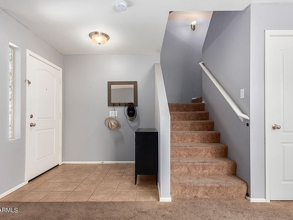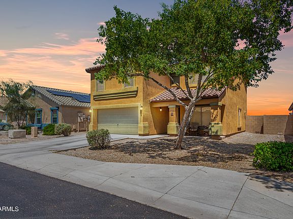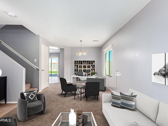 Nestled in proximity to Buckeye amenities, this home combines comfort and functionality, featuring a carpeted living spaces for cozy gatherings and tile flooring every where you need it. Front flex space provides opportunity for private entertaining or work while the great room overlooked by the open kitchen is perfect for family living or gathering with friends. Upstairs, the perfect-sized loft allows the right place for kids to use their imaginations or for a more separate work space to build the business of your dreams. The spacious primary suite invites relaxation with garden tub and step in shower without sacrificing space in additional bedrooms. Outside, a vast backyard awaits, complete with a covered patio, a play area, artificial turf, and ample space so you don't feel boxed in.