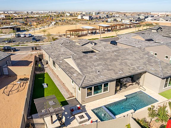 Priced $134k BELOW appraised value! Do you love New Construction but are not interested in doing finishing touches after closing like window treatments, landscaping, pools, bbq's, & personal design elements? You won't have to with this 5 bedroom, 4.5 bath, 3800+ SF home built in 2023. Everything has already been done inside & out. Master has private sitting/office area, huge double walk-in showers & 2 closets. One even exits to large laundry room. 2 additional bedrooms have personal on-suites. The kitchen is a dream come true, w/double ovens, pot filler, huge island w/seating, quarts counter tops & coffee bar area, but it doesn't end there! Bonus Butler's Pantry awaits around the corner & has additional counter space w/cabinet storage above & below, 2nd sink, 2nd fridge & large walk-in pantry. The kitchen/dining/living area is open & flowing w/vaulted ceilings & beautiful faux wooden beams. To top it off, there is also an added bonus/game room. We said inside & outside! The exterior has the same attention to detail. Enter through a private courtyard & immediately look through to a wall of glass inviting you to the backyard. It includes a sitting area, luxury pool & spa, covered pellet BBQ, fire-pit w/sitting area, play/game area, outdoor shower & even a dog run. The list of amenities goes on, including 3-car garage, electric blinds, located across from a park & more. Our suggestion - you owe it to yourself to check it out! We're convinced you will not be disappointed!