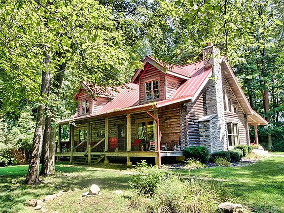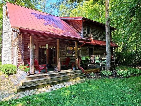 Live like you are on vacation all year long! Beautiful log home situated on 3 wooded acres. Drive down the private lane, through the woods, and arrive at this absolutely beautiful log home. Custom built-in 2003 by the current owners. Soaring cathedralceilings, beautiful exposed beams, large stone fireplace,custom cabinetry, double six-foot windows, dormers, tongue in groove paneling, wood flooring throughout, six-panel doors, three-inch trim, six-inch baseboard, wood-burning fireplace, new lifetime standing seam metal roof in 2018 at a cost of $55k. New furnace in 2018.There are front and rear porches for your relaxation and enjoyment! The lot is very private and has abundant wildlife. Come see this beautiful log home!