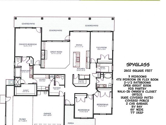 Welcome to Spyglass! This beautiful, single-level home by Biltmore Co. features a covered front porch, over-sized covered patio extending the entire width of the home & a 2-car garage with RV bay. You'll love the free-flowing floor plan that has plenty of room for everyone with a magnificent great room, gorgeous kitchen, large flex room & separate office area. The master suite has dual vanities, a huge walk-in closet & private access to the patio. Models Open 12-5pm, Tues through Sat.