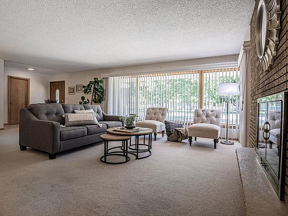 Welcome to this well-maintained rambler located on generous sized corner lot with paver front walk adding to the stunning curb appeal! 2 car attached garage with additional overhead storage and utility door to the fenced backyard which hosts storage shed and paver patio. Living room features dramatic wall-of-window and floor-to-ceiling brick fireplace. Kitchen with spacious dinette plus adjacent formal dining room. 3 large bedrooms on one level. Wood floors under carpet! Sprawling finished lower level with fireplace and versatile floor plan for recreation, exercise room, home office and so much more. Cedar closet. Close to walking and biking trails.