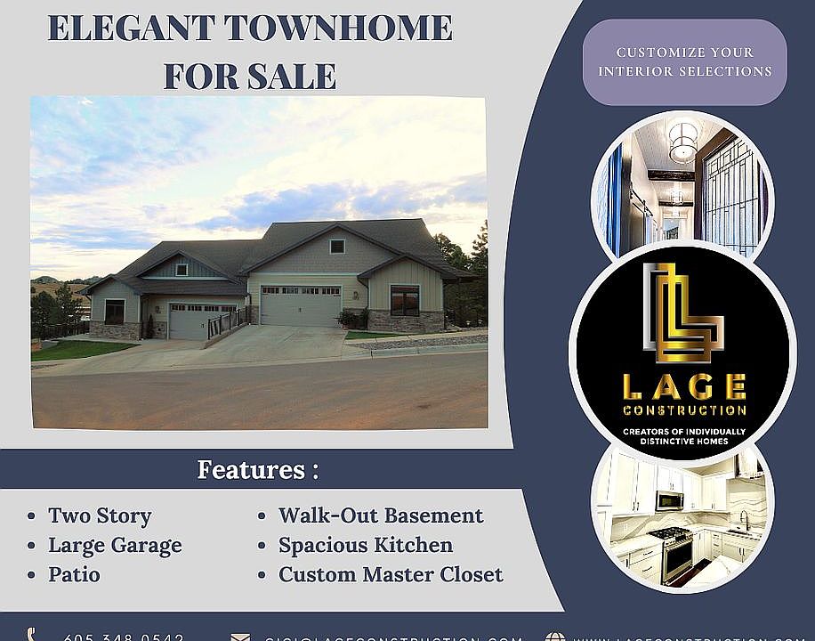 This beautifully built townhome will be loaded with custom features and high-end finishes! Mix that with multi-level living, and it is the perfect home! Two bedrooms are located on the main level of the home with two full bathrooms. The main living space is open and inviting, easy for entertaining and gatherings! The kitchen features upgraded countertops, a large island, tile backsplash, and a buffet for an additional serving area, coffee station and a wine cooler. Staying warm will be easy with the cozy fireplace in the family room! The attached dining area leaves plenty of space for a table, and an oversized sliding door to the backyard. You have lots of room in the master suite which includes a large walk-in closet and a dedicated bathroom with natural countertops and walk-in tiled shower. And that is just the main floor! There are even more opportunities on the lower level to make this townhome fit your lifestyle! Want your garage heated? You can have that too! Enjoy the ease of maintenance free living with the lawn and snow services paid for through the HOA. Call us today to find out more about how you can make this gorgeous townhome yours! 605-348-0542 (Photo in ad is of the townhouses next door. The last photo is Lot 4.)
