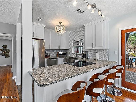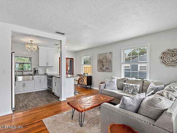 From the covered front porch, to the gleaming wood floors, to the abundance of natural light, to the inviting backyard space...this Lakeshore home exudes charm and pride of ownership! This updated 3/1 features a remodeled kitchen (with stainless-steel appliances, farmhouse-style sink, and counter-to-ceiling designer backsplash), living room with electric fireplace, and a completely-updated bathroom. The fenced backyard awaits you with a covered patio, leading out to a spacious deck connected to the above-ground pool. Great space for entertaining or quiet nights at home! Other perks of the backyard space include a Koi pond, outdoor shower, storage shed, and still some yard left to enjoy. Electric rewired in 2024 (no cloth wiring!), new HVAC in 2023, new roof in 2018, new water heater 2023, above-ground pool in 2020, new septic & drainfield in 2014. Termite bond with Massey Services. Ideally located close to shopping, places of employment, historic districts, parks and much more.