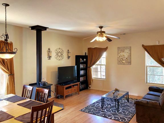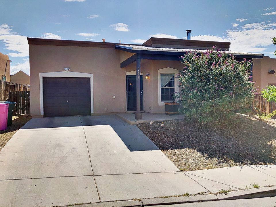 Polished Santa Fe Territorial style home ready for it's new owner today! This 3 bedroom Southside gem is highlighted by a airy and open concept kitchen, living, dining room combo on a rare lot. Accented with faux wood laminate flooring, a wood burning stove, multiple window surround and skylights are just a few features showing it's modern appeal. An incredible benefit of this generously sized lot is the attached garage, additional off-street parking, covered porch, and a rear patio spanning the width of the house offering a true backyard retreat. A clean and rare find so don't hesitate and schedule your showing today!