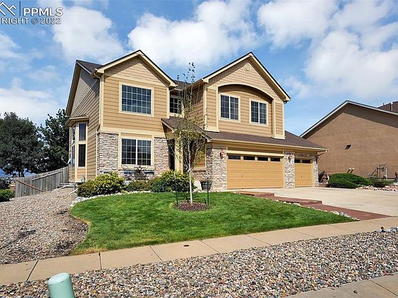 Ready to move in?? This beautiful well maintained 2 story, 3 bedroom, 4 bathroom, heated and insulated 3 car garage in a cul-de-sac home won’t last long. Currently the home is used as a 3 bedroom, but seller is willing add the closets/freestanding closets to the original floor plan which is an 5 bedroom plan Home has great location to all the powers corridor amenities and Peterson AFB. When entering this home you will see a stamped concrete walkway with concrete adjoining porch. The main level has 9’ ft ceiling throughout with a 18ft vaulted entryway. Main level flooring is 6” wide plank white oak, with tile in the kitchen. Kitchen is ready for entertaining with a dual oven, gas stove, insta hot water feature at sink, and beautiful maple cabinets. The master bedroom is spacious, full of natural light with bonus heated floors. Master bath has an Air spa bathtub, a 3/8 shower enclosure, and elongated toilets at comfort height. Some home extras are a 48 gallon hot water heater and shed for some extra storage. Enjoy the outdoors and relax on the back patio with views of the city, and Americas mountain…Pikes Peak…. that will surely make you want to stay and call this home! Schedule your tour today!