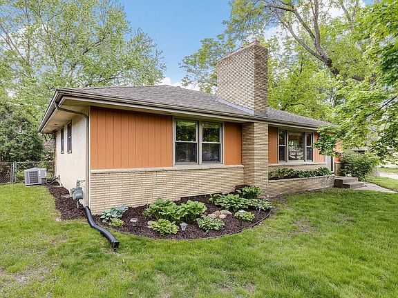 Brick and stucco mid-century modern on large corner lot conveniently located to freeway access and the surrounding area has to offer. Hardwood floors, 2 fireplaces, new carpet in the lower level, attached 2 car garage. Landscaped back yard with patio and abundant perennials.