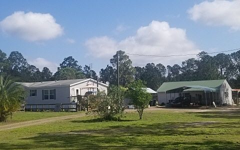 3 bedroom 2 bath Palm Harbor offer 10 +/- acres for your country lifestyle. The spacious home has a split bedroom plan,fireplace,indoor laundry room,large kitchen with island. Master bedroom accomadates a king size bed and ensuite bath with his and her sinks and a jacuzzi tub. The home has a reverse osmosis water system, water softner outside, and new pressure tank. The property is mostly cleared and offer 4 horse stalls,2 additional stalls for goats.a 24 x36 shop with power, water, and a metal roof. 2 car carport for your truck or car. Pond for the ducks to swim. septic as pumped late last year.