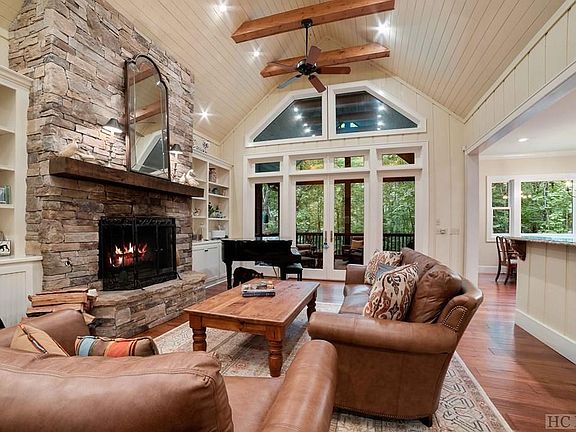 Looking for a home that offers a lot of indoor and outdoor space? This is it! Situated on 3 +/- acres of beautifully wooded acreage with a dedicated fire pit area and yard, this home is well appointed and only 10-12 minutes from downtown Highlands and 20 minutes to Cashiers. The main level of the home features high ceilings in the foyer and great room, a screened porch and open deck, large eat-in kitchen with everything the at home chef needs, a formal dining room, a wine room, a study, powder room, spacious master suite with a wonderful walk-in closet, laundry room, and an en suite guest bedroom. The upper level has a darling toy room and storage room plus a ton of unfinished attic space if you ever needed more room. The lower level of the home features two additional guest suites, both with private bathrooms, a second living room, billiards room with wet bar that includes a wine cooler, ice maker and microwave, a fitness room, and another powder room plus a screened porch. The home is zoned with four HVAC units so it's easy to only heat and cool the spaces you are using and a new tankless on demand hot water system has just been installed. So many fun memories to be made in this home! Lots of fun hiking and waterfall/river trails nearby too. This is a must see!!!