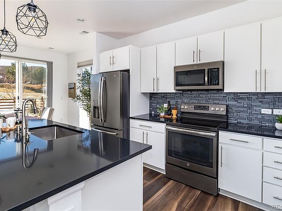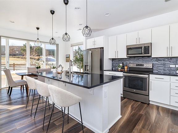 Welcome to this exquisite home nested on one of the best and most desirable lots in the Copperleaf neighborhood. As you walk in you will be impressed by the abundance of natural light, functionality of the floor plan and the high end finishes this home offers. The main level seamlessly flows from the spacious and inviting living room with modern fireplace and home theater pre-wired system to the gourmet kitchen and dining area. The kitchen features: stylish white cabinets highlighted by gorgeous black quartz, modern backsplash, large pantry offering plenty of space for storage, stainless steel appliances, touchless faucet and to top it off- reverse osmosis water filtration system. Great size dining area allowing you to embrace indoor-outdoor living with double sliding doors to the backyard. The open-concept design is highlighted by 9-foot ceilings and luxurious vinyl flooring on the main floor and 8-foot ceilings upstairs, offering a sense of spaciousness and comfort throughout. As you move further to the second level you will find the large loft that can be easily converted into a 4th bedroom or used as an office, TV room, kids play room or playstation area- you decide! The primary suite is a retreat with a tastefully designed en-suite bathroom and walk-in closet, offering the perfect blend of luxury and functionality. Upstairs you will also find two more bedrooms and a full bathroom with modern upgrades. Last but not least is the perfectly leveled and sized, made for Colorado's 300 days of sunshine backyard, backing up to open space making it a rare find in the community. Large deck with gas line ready for grilling for your guests. Furthermore, the home is loaded with amazing features such as full house humidifier system, whole house softener and filtration system and much more. Enjoy the community perks that include a gorgeous pool, clubhouse and playgrounds. Close to everything- highways, parks, trails, restaurants, shopping and more. Welcome Home!