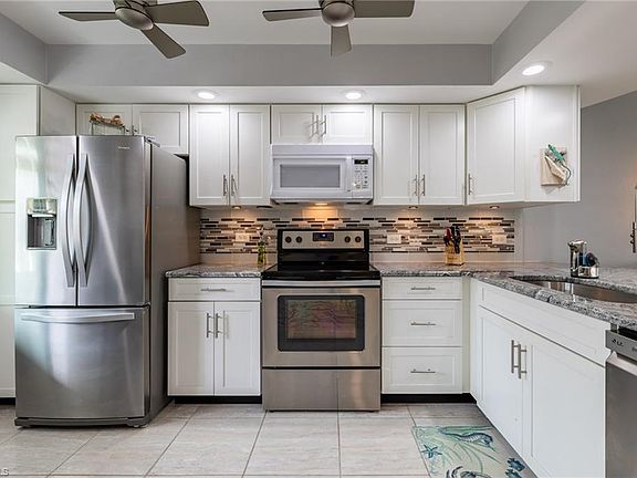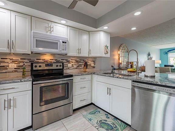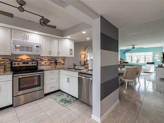 AMAZING, ONE OF A KIND, TRUE BEAUTY! SPACIOUS 2 BEDROOM, 2 BATH 1ST FLOOR END UNIT CONDO ON A GULF ACCESS CANAL. OUTSIDE, THIS NEWLY PAINTED BUILDING WITH NEW COVERED CAR PORTS IS JUST THE BEGINNING OF THE UPDATES AND REMODELING HERE. BEAUTIFULLY TILED THROUGHOUT, WITH AN OPEN AND BRIGHT LAYOUT, ENTRYWAY HAS A TRAY CEILING WITH ACCENT LIGHTING AND A CUSTOM DESIGNED WALL WITH SHIPLAP. REMODELED KITCHEN HAS GRANITE COUNTER TOPS, TILED BACK SPLASH, RECESSED LIGHTING, NEW FANS, NEWER STAINLESS STEEL APPLIANCES, AND QUALITY CABINETRY WITH PULL OUT DRAWERS. ENTER YOUR EXTRA LONG PAVER LANAI THROUGH ONE OF THREE SETS OF SLIDERS, ONE OFF THE LIVING AREA AND ONE OFF EACH BEDROOM. THREE SETS OF ELECTRIC HURRICANE SHUTTERS. ELEGANT REMOTE CONTROLLED LEVELOR BLINDS IN THE LIVING ROOM. BEDROOMS ARE EQUALLY BEAUTIFUL, BUT MASTER IS OVER THE TOP WITH THREE CLOSETS, LARGE MEDICINE CABINET AND PULL OUT DRAWERS UNDER SINK. BOTH BATHROOMS REMODELED WITH GRANITE COUNTERS AND NEW SHOWER/BATHS. UPGRADED FRENCH DOORS THROUGHOUT. LARGE LIGHT AND BRIGHT LAUNDRY ROOM. COVERED CARPORT SPACE RIGHT IN FRONT OF UNIT. TONS OF STORAGE, HEATED POOL AND COMMUNITY ROOM, A MUST SEE!