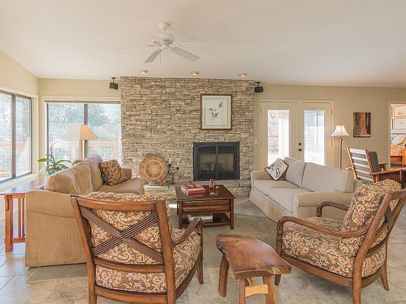 This one checks all of the boxes! This lovely home is impeccably cared for. Walking in to the open floorplan one is greeted with picture windows throughout the living space. The home was designed to take advantage of the jaw dropping views as well as the natural light. The newly remodeled kitchen has abundant storage. The master bedroom with walk in closet and ensuite bathroom is separate from the other three bedrooms. There is over 1600 sq. ft. of decking that adds to the livings space bringing the outdoors in. This is a great space for entertaining and just relaxing. A detached three car garage is just steps away from the front door. The 5 acre grounds are so beautiful and lush. There is a potting shed, gazebo deck, and even remnants of the historic Cinnamon Canyon schoolhouse on the property! There is also a huge workshop/barn and a 640 sq. ft. guest house. This home is a must see.