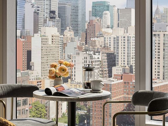 This fully-furnished and fully-serviced Studio, 1 Bath features a queen-sized bed, walk-in closet, Miele W/D, voice-controlled smart home technology, and inspiring city views through floor-to-ceiling windows. The kitchen is equipped with Brazilian marble countertops, full-height backsplash, and Wolf induction cooktop and speed oven. The luxe bathroom includes custom Italian vanity and a walk-in shower. Weekly housekeeping, room service from the on-site restaurant, and more make this a truly unique living experience.