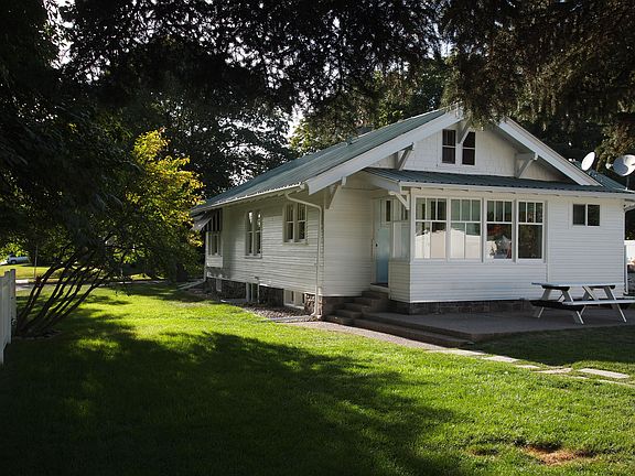 Charming Craftsman Style House listed on the Kalispell Historic Registry. The Evenson House has been upgraded and restored to perfection. Extra large corner lot on a wonderful tree-lined street in desirable neighborhood. Wide sidewalks and within walking distance to restaurants and shops. Original clap-board siding and beautifully refinished wood floors in larch, pine and fir. Gothic arch in living room and dining room, built-in window seat, and period-style raised paneling. Kitchen has been completely remodeled with new appliances and wonderful designer touches. Bathrooms are sparkly new with period details. Two enclosed porches, front and back, add extra living space and views to the lushly landscaped yard. Fruit trees, Asian chestnut trees (people stop to take pictures when these are in bloom) and large garden area ready for planting. Original, yet sturdy, shiplap-sided single car garage with new roof, electrical and door opener. Basement has been fully finished to include the 4th bedroom, a large bonus room, bathroom, laundry room, craft/hobby room and plenty of great space for your designation. Plumbing and electrical have been upgraded. This home is everything you could hope for (photos don't do it justice) and ready to be loved.