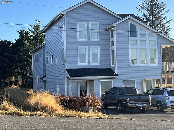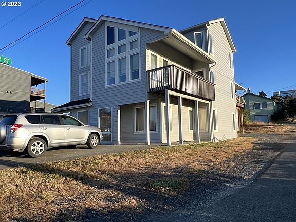 UNOBSTRUCTED VIEWS OF PACIFIC OCEAN, HUMBUG MOUNTAIN & PORT OF PORT ORFORD FROM EVERY ROOM. Ground floor has been retail/office space in the past. Lots of parking. Master Suite on the 3rd floor with spa bathroom; Primary living area on the second floor has open space concept with viewing deck off the living room area. Each floor has a bedroom & full bath. There is a 2 car garage with separate living quarters above with its own entrance. The separate living quarters can be attached to the home (through an existing foyer with a door to each unit)for extra living space making it a 4 bedroom, 4 bath home. The main home and separate living quarters are currently rented. Excellent 4C, commercial/residential zoning make this a perfect spot for large family home or vacation rental or AirB&B or 2 unit rental. This property is located right in the heart of Port Orford and across the street from the Beach and Port. A MUST SEE!!