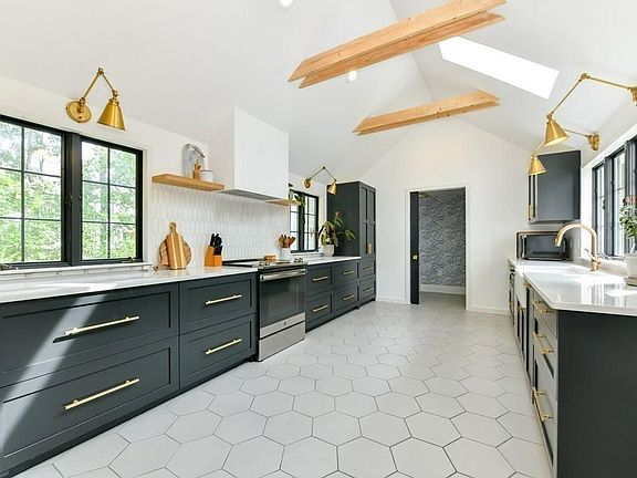 Step through the entrance of this well designed 3 bedroom, 2 bath home featuring a cozy living room, office with fireplace and custom built-ins, beautifully wallpapered laundry/mudroom, updated bathrooms and sunroom. Enjoy entertaining in your oversized dining room with beautiful french doors leading out to a gorgeous patio, a true extension of the home. Through pocket doors in the dining room you'll find the heart of the home- a fully renovated straight-out-of-a-magazine kitchen, flooded with natural light. This custom kitchen was designed to be as efficient as it is beautiful. Enjoy wood beams, brass fixtures, farmhouse sink, quartz counters, marble backsplash with floating shelves, and custom semi handmade maple shaker cabinets as well as top of the line GE Appliances. Gather ingredients from the matured herb garden, berry bushes and veggie beds. With close proximity to transit, moments to local parks, walking paths and shopping, this home is perfect for every lifestyle.