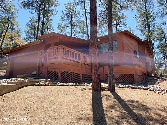 Price decreased! This new discount offers a generous reduction for flooring and paint! Exceptionally crafted cedar home in a secluded private forest setting in one of Prescott's most desirable neighborhoods. Private and very spacious for daily living and conveniently accessible from White Spar Rd. Expansive living and dining rooms, a large family room with original stone fireplace and an open patio make this home feel like a mountain retreat. The kitchen and breakfast cove are sized appropriately for gatherings of friends and family. The primary bedroom features an en-suite bathroom. The two other bedrooms have ample square footage for additional living spaces, office, or game room! This home is a gem that is priced to sell fast.
