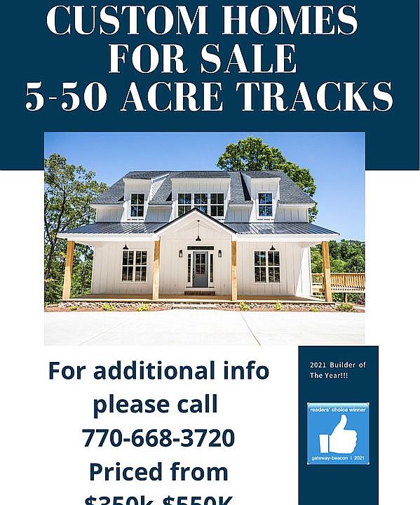Pre-selling custom homes by award winning builder Frank Norment Homes. Ranging from $350,000-$550,000 on beautiful 5-50 acre tracks.